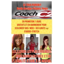 Matériel: Pour le cours de body design une paire de poids entre 3 à 10 lbs pour le pilates et yoga un tapis de sol pour votre confort.